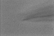 A hippocampal slice as seen using differential interference contrast (DIC) and near-infrared illumination. A row of large cell bodies can be seen along the diagonal from lower left to upper right. The target cell is in the center of the field of view. |